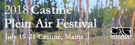 The 2018 Castine Plein Air Festival saw bright sunny skies for the entire three day festival. Thirty juried artists arrived in Castine on Wednesday July 18th and enjoyed a reception at the Castine Inn with sponsors, hosts and volunteers. Over 150 paintings were produced over the next three days. An Artist's Reception and Art Sale was held at the Maine Maritime Academy's ABS Center for Engineering and Science. The reception was preceded by an awards ceremony. Prizes were awarded to the following: